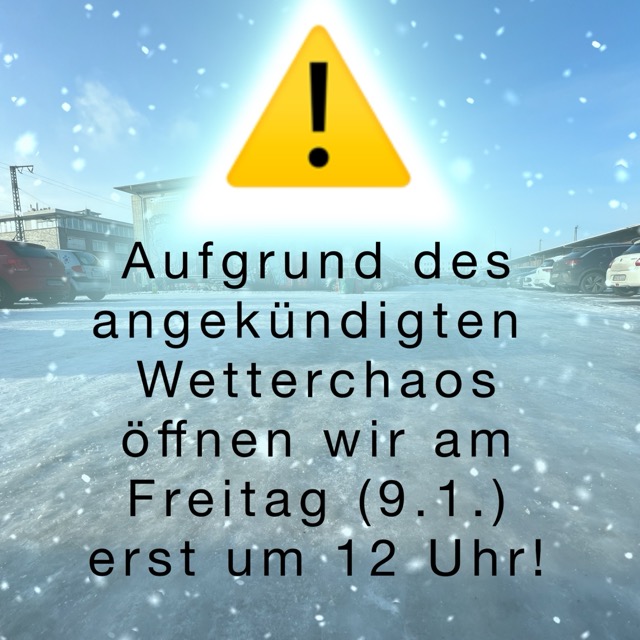 Wir öffnen am 9.1. erst um 12 Uhr. Danke für euer Verständnis!